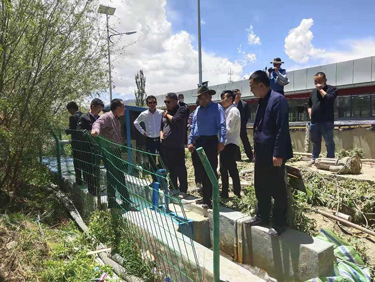 西藏自治區(qū)環(huán)保廳羅杰廳長(zhǎng)等眾多領(lǐng)導(dǎo)蒞臨扎囊縣污水處理廠考評(píng)工作